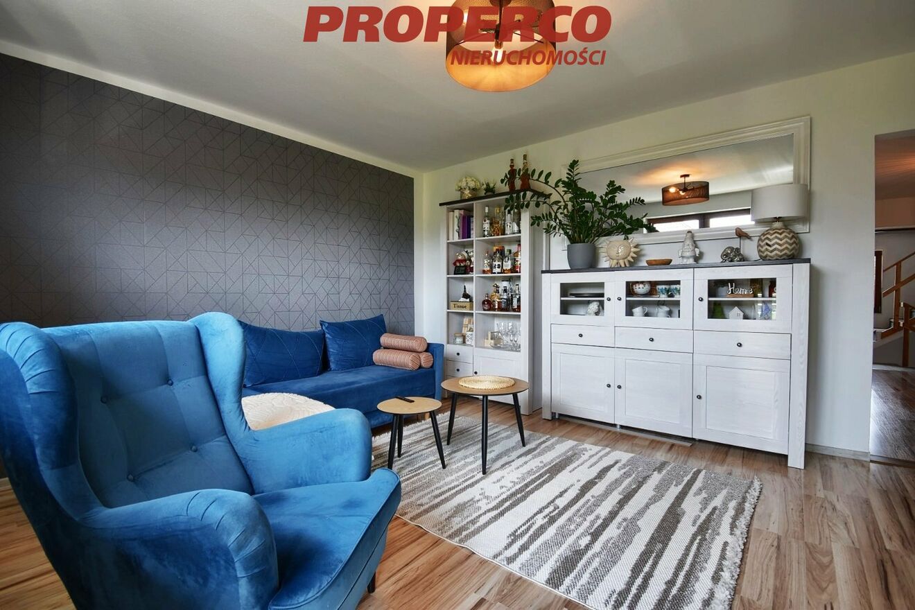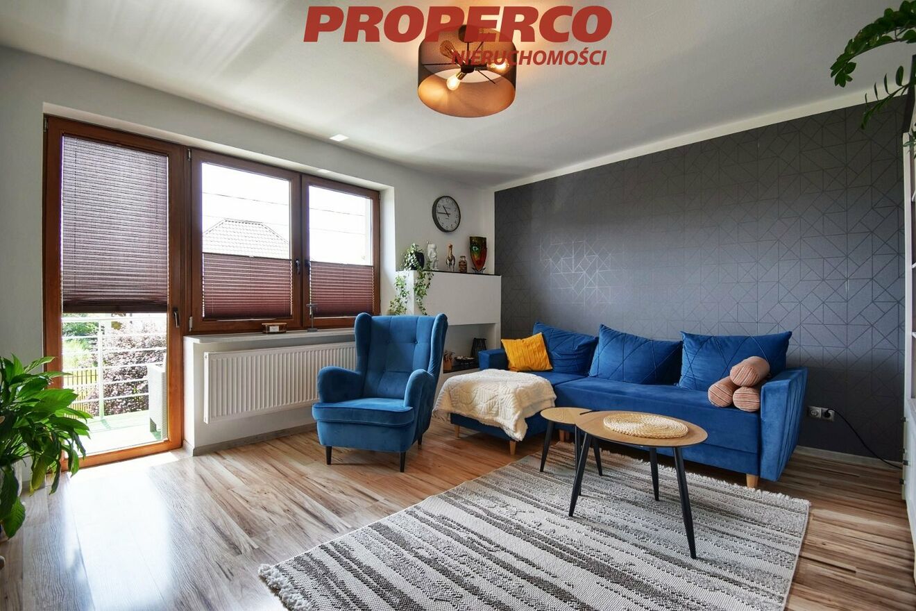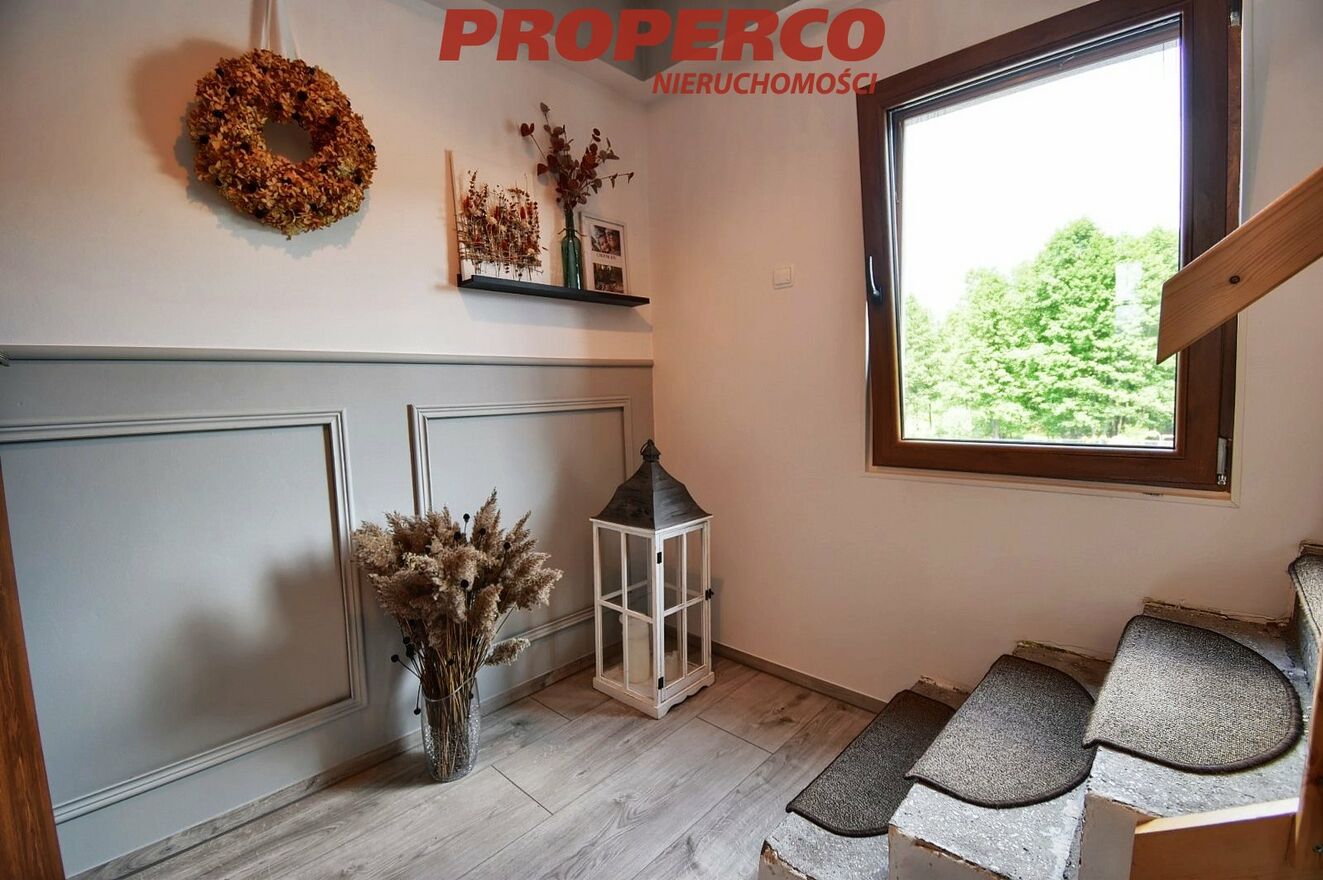For sale: a spacious two-story detached house with a total area of approx. 270 m² (usable area approx. 155 m²), situated on a large, fully landscaped plot of 2,469 m² in the picturesque village of Lesica, Piekoszów Commune.